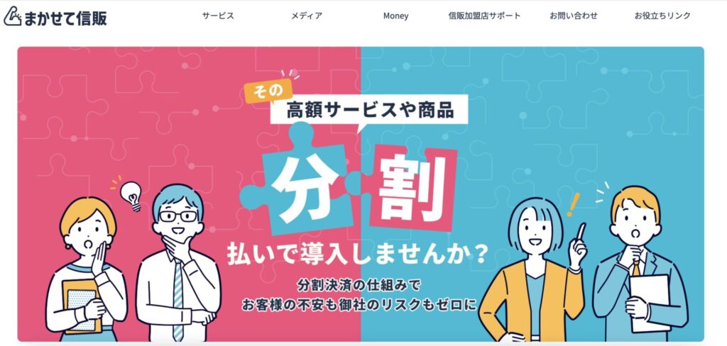ホームページ制作費用分割払いで売上を最大化。「まかせて信販」は、高額商品や役務の販売を行う営業会社のための分割決済導入支援サービスです。最長96回払いに対応し、クレジット・ローン会社との提携を徹底サポート。ホームページ制作やエステ・スクール・コンサルなど、役務性の高い商材にも対応可能。設立間もない企業でも導入実績多数。分割の仕組みを武器に、成約率と顧客満足を一気に引き上げましょう。