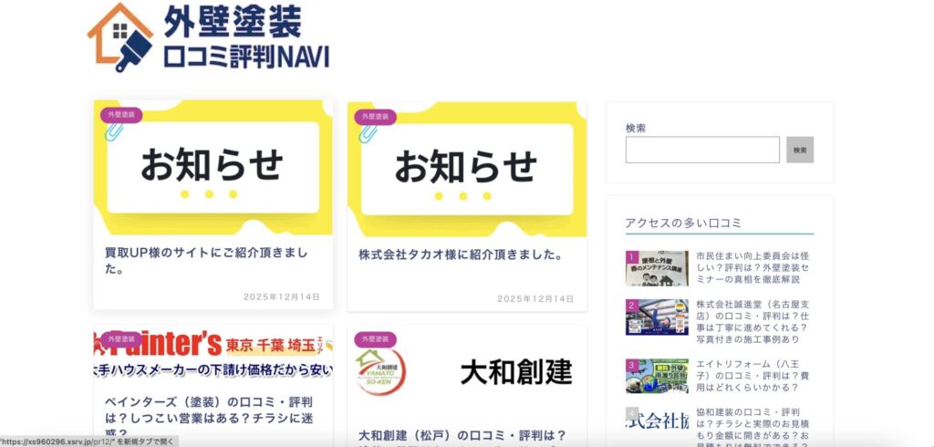 全国の外壁塗装業者様をそれぞれ特集し、口コミやこだわりや得意分野など細かく紹介するサイトになります。塗装業者を探してどこにしようか迷っているユーザー様にもってこいの外壁塗装業者のプラットフォームに掲載されました。