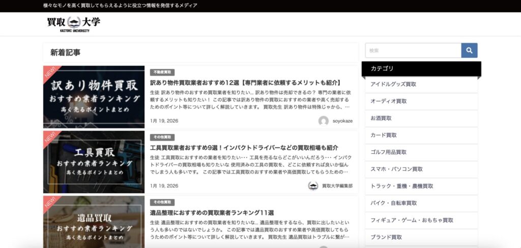 買取大学の訳あり物件買取業者おすすめ12選【専門業者に依頼するメリットも紹介】に掲載されましたのでご紹介させていただきます。「買取大学」は、様々なモノを高く買取してもらえるように役立つ情報を発信するメディアです。ブランド品から骨董品、トレカまで、幅広いジャンルの買取情報を網羅。最適な業者選びや高価買取のコツを詳しく解説し、皆様の賢い売却をサポートします。